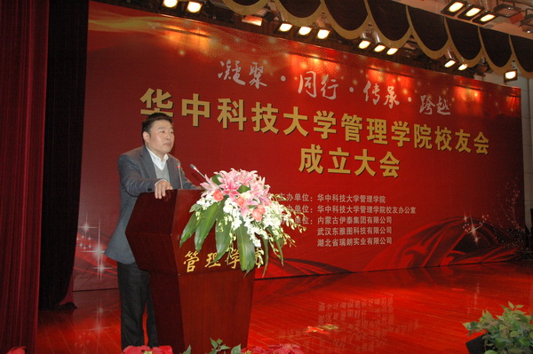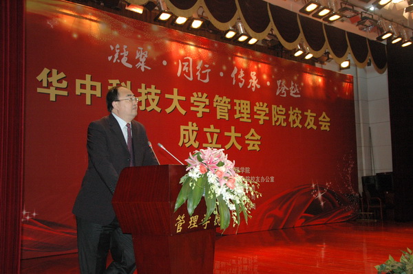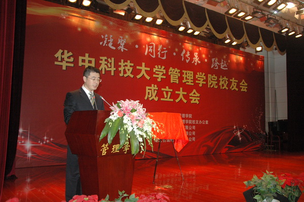 我院校友会理事机构代表、EMBA同学会会长、我校武昌分校董事长金国华盛赞校友会成立意义重大,回忆与校友之间的商业合作以及成立华科大武昌分校过程中校友给予的支持,他深感校友情谊地久天长,希望大家进一步精诚合作。