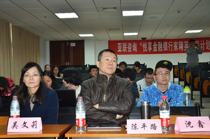 (qy千亿球友会新闻宣传中心记者 李杰/文 彭志武/摄)3月14日下午2点,亚联咨询“悦享金融银行家精英培养计划”第一讲在我院105教室开讲。主讲嘉宾为亚联(天津)管理咨询有限公司项目经理沈鑫,部门经理董珠出席讲座。我院出席讲座的有财政金融系主任陈平路教授、校友办公室主任吴文莉副教授。