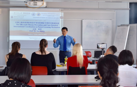 6月19号,余翔教授作了“The Silk-Roads Disease Prevention and Cure Oriented International Coordination on Patent Licensing Mechanism”的主题学术报告。qy千亿球友会学生则分别作了题为“Copyright Law inthe Age of AI--Challenges and Strategies”和“The Impact of AI on Patent System and Countermeasures”的学术汇报,及“Sino-German Innovation Cooperation in The Context ofthe Belt and Road Initiative”和“Chinese-German Higher Education Cooperationunderthe Backgroundofthe Beltand Road”的文化报告,对一带一路战略背景下中德创新合作及教育合作的现状、案例和发展机遇作了详细论述。德方听众表示通过报告了解到了“一带一路”真正的内涵和具体的成绩,并对未来的中德合作表示极大的兴趣。