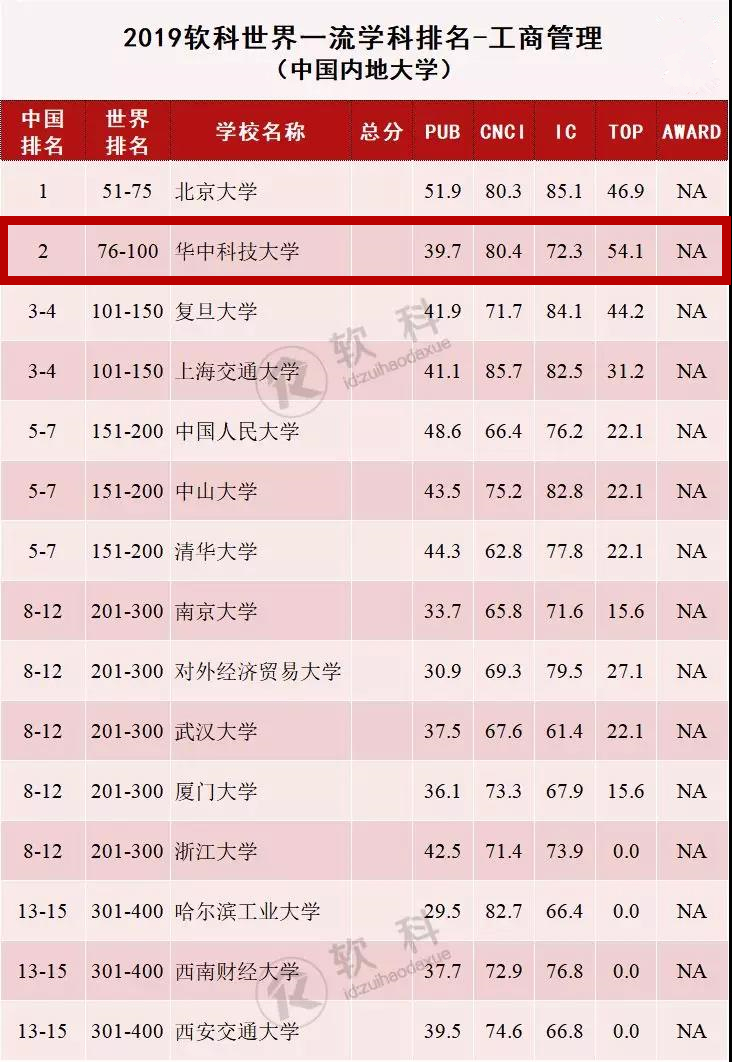 在2019软科世界一流学科排名中,我院工商管理学科在内地高校中排名第二,管理学学科在内地高校排名第四。