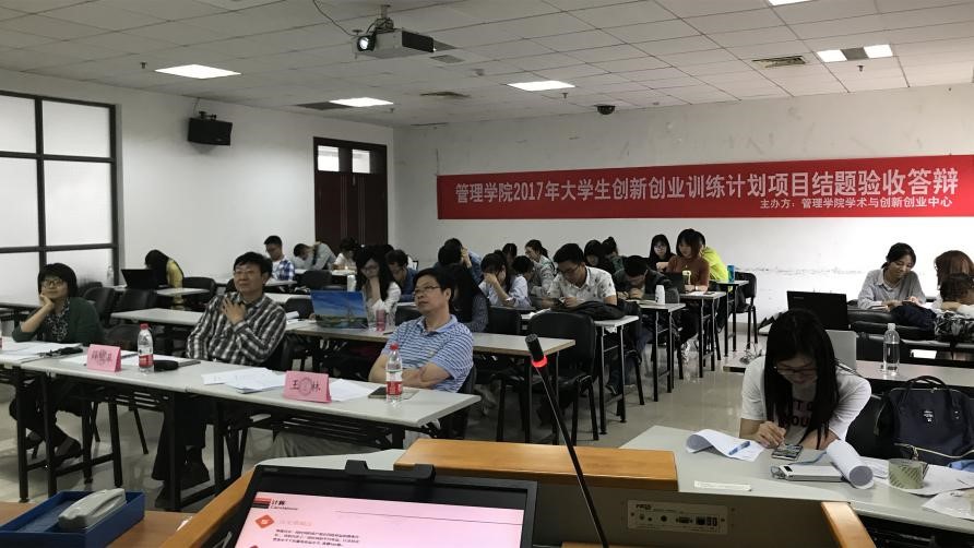(qy千亿球友会新闻宣传中心记者 黄雨琦/文)5月23日,2017年大学生创新创业训练计划项目中期检查暨结题验收答辩会在qy千亿球友会113、116教室顺利举行。参加并担任本次答辩会的评委有财务金融系教授薛明皋、生产运作与物流管理系教授王林、工商管理系副教授戴鑫、管理科学与信息管理系副教授秦虎、财务金融系副教授王诗才、管理科学与信息管理系讲师李晓艳。