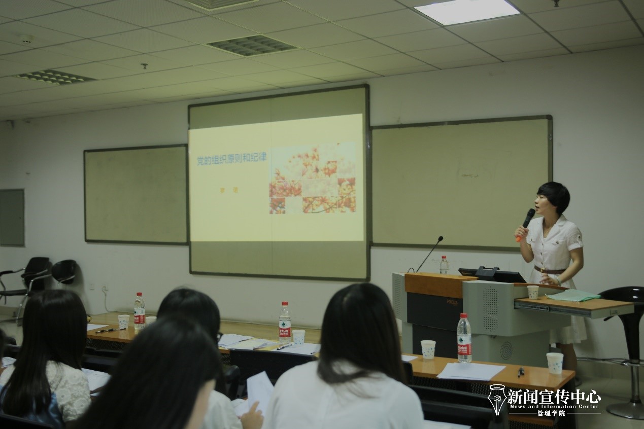 紧接着,电气与电子工程学院党委副书记罗珺带来预备党员培训班培训第一讲——《中国共产党的组织原则和纪律》。罗珺以组织中最重要的因素——规矩和制度为切入点,说明了党的组织原则和纪律在党的发展中的重要性。党的根本组织原则是民主集中制原则,罗珺围绕民主与集中两个关键词向学员们详细阐释民主集中制的发展、内容和实行原因。紧接着,她向同学们介绍了党的纪律及纪律处分,并用鲜活的实例说明了如何对党员进行纪律处分。“不忘初心,继续前进”,罗珺以这句话作为结束语勉励学员们严格要求自己,成为合格党员。