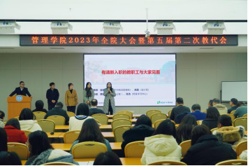 胡艳华做题为《凝心聚力谋发展 砥砺奋进启新程》的总结讲话。胡艳华表示,2023年是学院“十四五规划”发展关键之年,同时也是学院立足新的历史起点,全面贯彻落实党的二十大精神、迎接新时代高质量发展的开局之年,围绕如何促进学院各项事业又好又快发展,她代表院党委提出了三点想法。一是聚力关键,围绕学科建设、专业系调整、人才特区建设与招生工作等关键环节推动学院高质量发展,坚持稳中求进、循序渐进、持续推进;二是聚焦人本,通过提升文化建设、加强人文关怀、讲好管院故事等方式强化学院氛围营造,不断增强凝聚力和幸福感,在更多层面发出管院声音;三是聚合力量,继续深耕问策问计,充分发挥基层党组织的作用,深入践行一线规则,不断提升民主管理水平。