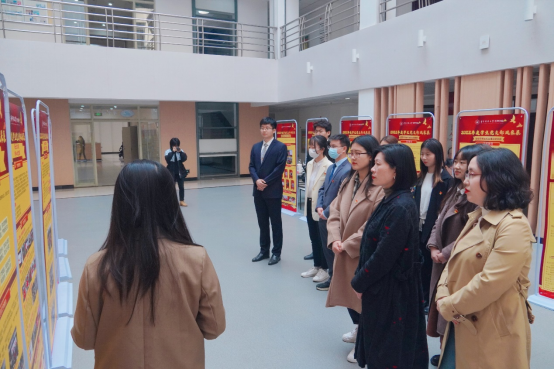 在风采展示时,本科党建办朱玮雯和研究生党务中心王思蕲结合2022年的整体工作情况向学院党委进行了现场汇报。通过图片文字丰富的海报介绍了本科生和研究生党建工作的具体情况,全面展示了党建工作的风采。