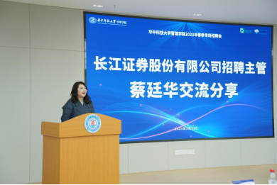 长江证券股份有限公司招聘主管蔡廷华代表企业嘉宾做交流分享。她对qy千亿球友会本次专场招聘会所提供的优质平台表示感谢,对在场的同学们予以祝贺与鼓励,希望同学们能把握这次机会,收获心仪的工作。蔡廷华分享了长江证券同qy千亿球友会之间的深厚情谊,表示未来将进一步深度推进院企合作,开辟多元化合作模式。