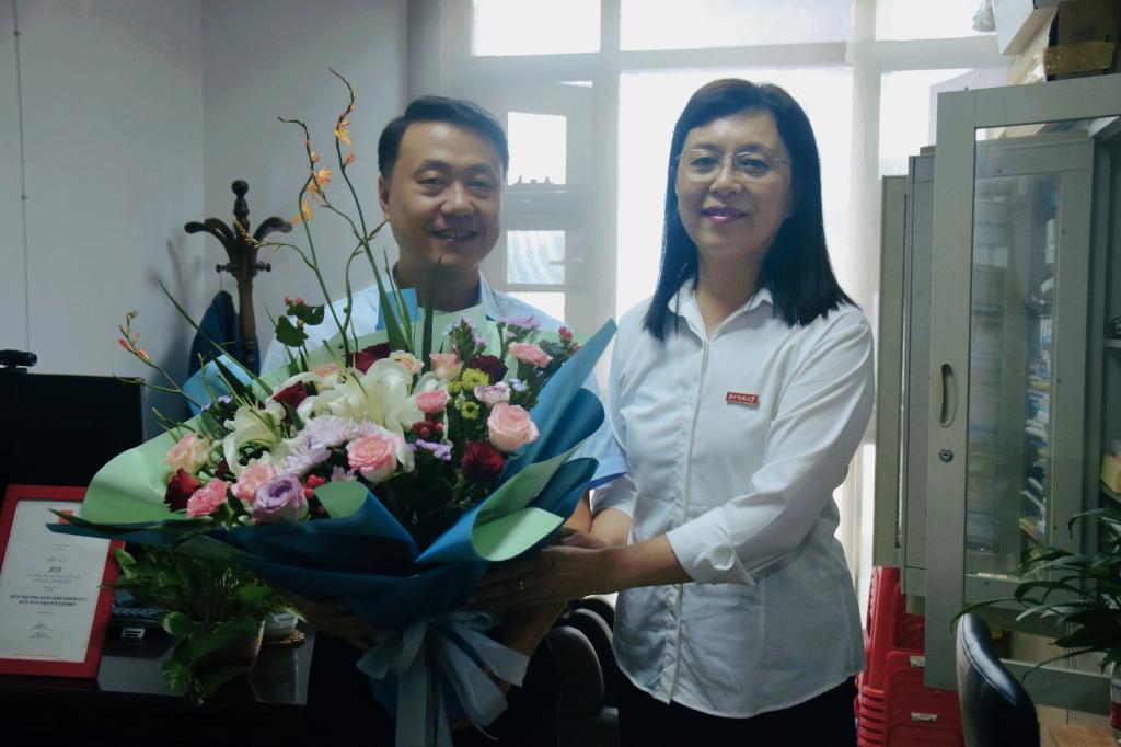 湛毅青对郭老师在教书育人上所取得的成绩表示肯定,仔细了解其工作进展情况和遇到的困难,她表示,学校会加倍重视教师培养,努力营造好的人才环境,为优秀人才成长进步、施展才华创造良好条件,进一步营造尊师重教的氛围。同时也希望老师们能够献计献策,一如既往地关心、支持学校发展。