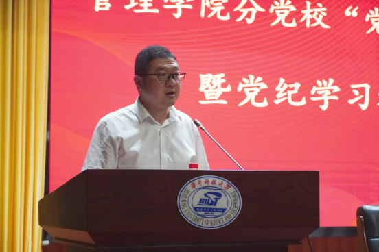 胡艳华强调,要提高政治站位,深刻认识纪律建设重大意义。加强党的纪律建设是永葆马克思主义政党本质属性的内在要求,是发扬党的光荣传统和发挥党的独特优势的有效路径,是奋力推进中国式现代化的现实需要。qy千亿球友会作为在中国改革开放初期创建、与新时代同呼吸共命运齐发展的一流商学院要勇担放眼全球、创造管理知识、培养管理精英、推动社会发展的使命,以新质生产力推进中国式现代化深入发展。要全面对标对表,严格遵守六大纪律具体要求。要严守政治纪律,做到一心向党,把“两个确立”“两个维护”体现在具体行动上、工作实效上、言行举止上。严守组织纪律,做到凝心聚力,坚决落实“四个服从”,自觉做到思想上认同组织、政治上依靠组织、工作上服从组织、感情上信赖组织。严守廉洁纪律,做到公心用权,树立正确的权力观、地位观、利益观,严以律己。严守群众纪律,做到真心为民,自觉站稳人民立场,走好群众路线,认真解决师生急难愁盼问题,树立良好口碑。严守工作纪律,做到尽心履职,以正确的政绩观为指导,厚植“功成不必在我”的精神境界和“功成必定有我”的历史担当。严守生活纪律,做到清心正己,要严守纪律底线,崇尚俭朴净化“社交圈”、敬畏纪律净化“生活圈”、守牢原则净化“朋友圈”,自觉砌起“防火墙”,做到稳得心神、管住行为、守住清白。要勇担职责使命,在政治能力作风方面作表率。做到政治过硬,忠诚于党的教育事业。要提高“学”的质量、抓住“悟”的精髓、加大“用”的力度、严守“防”的底线,红色是我们的底色,要始终坚持对党忠诚。做到能力过硬,推动学院事业高质量发展。要坚持高追求、高目标、高定位,面向国家重大需求,推进学科交叉融合;回应时代之需,落实立德树人根本任务;围绕人才强院战略,汇聚学院卓越人才工作最大合力;服务高水平科技自立自强,不断推进有组织的科研;立足中国,放眼全球,提升国际化办学能力;深入推进产学研成果转化,以服务社会为己任。做到作风过硬,成为传承优良传统的接续奋斗者。对事业要有使命感,对师生要讲真感情,对同志要讲真团结,对纪律要存戒惧感,始终保持优良的干部作风。