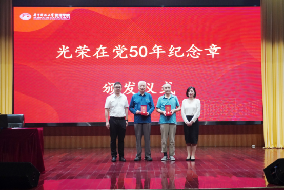 培训结束后,胡艳华和杨治为今年“光荣在党50年”的优秀党员代表成邦文同志和张凌云同志颁发“光荣在党50年纪念章”,看望慰问退休老同志代表,与他们亲切交谈,感谢他们在学院发展过程中做出的贡献,向学院各位老同志、老党员表达崇高的敬意和节日的问候!