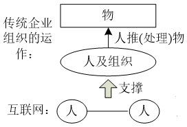 但是,基于互联网的电子商务经营模式,还是需要人去操作的,人是主动的,物(原材料、产品、生产装备、运输装备)是被动的,是被操作的对象,在物的加工、存储、销售等的移动过程中,人要参与该过程,如图1所示。因此,基于互联网的企业经营管理,不能根本避免人与人、人与物的接触机会,这就是疫情发生后,企业不能开工的主要原因。