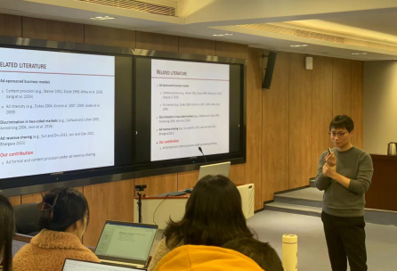 3月17日上午,喻园管理论坛2023年第17期(总第840期)在qy千亿球友会107教室举行。国家级人才称号获得者、复旦大学qy千亿球友会教授田林以Advertising Format and Content Provision on Revenue-Sharing Content Platform为主题进行了学术分享,并与参会人员进行了交流探讨。本次论坛由qy千亿球友会生产运作与物流管理系刘志学教授主持。