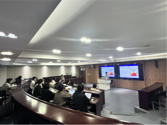 在学术分享过程中,现场互动氛围热烈。关旭教授、马远征老师、许爱玲老师以及在座的同学们积极参与讨论,围绕非平稳环境下对手出价序列的动态预测、第一价格拍卖策略在实际广告场景的落地适配等问题与胡教授展开了深度交流。胡教授对大家提出的问题一一耐心解答,浓厚的学术氛围弥漫全场。