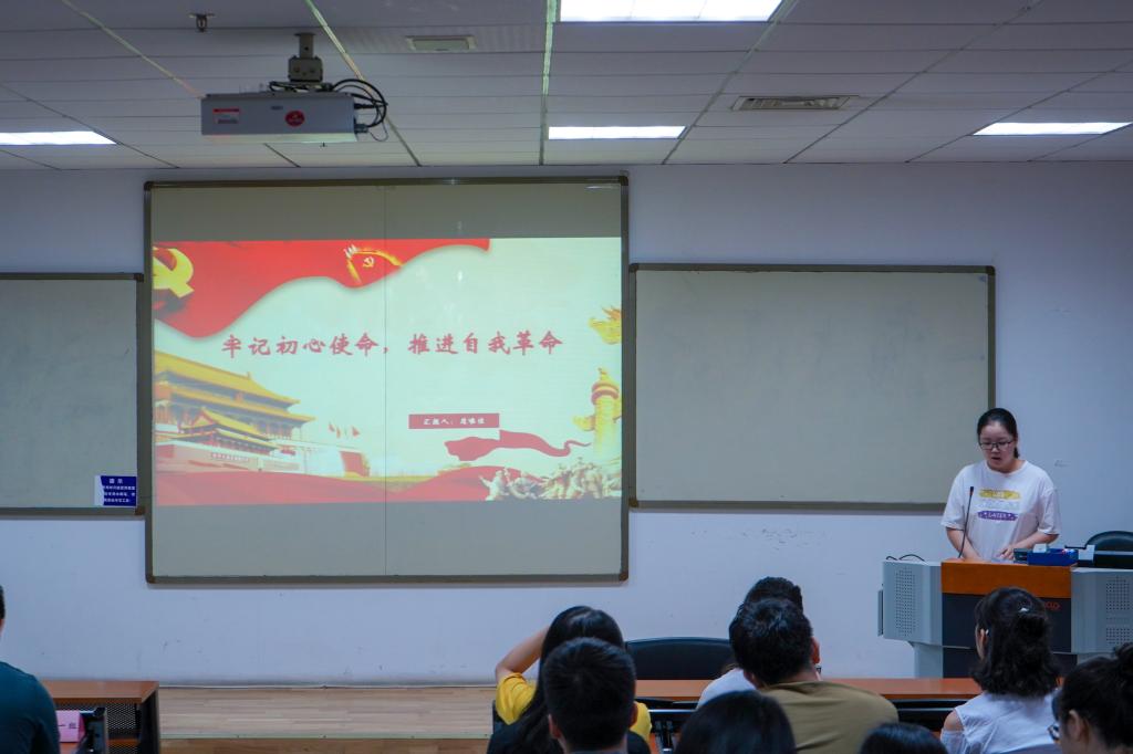 活动开始,18级管理科学与工程专业的周唯佳以“牢记初心使命,推进自我革命”为主题,为硕士18、19级管理科学与工程与企业管理专业的同学们展开了一节生动又趣味的微党课,并带领大家一起学习了中央政治局的重要讲话,传递了党中央的重要精神。同时通过提问的方式与现场的同学们进行相关知识的巩固与记忆。