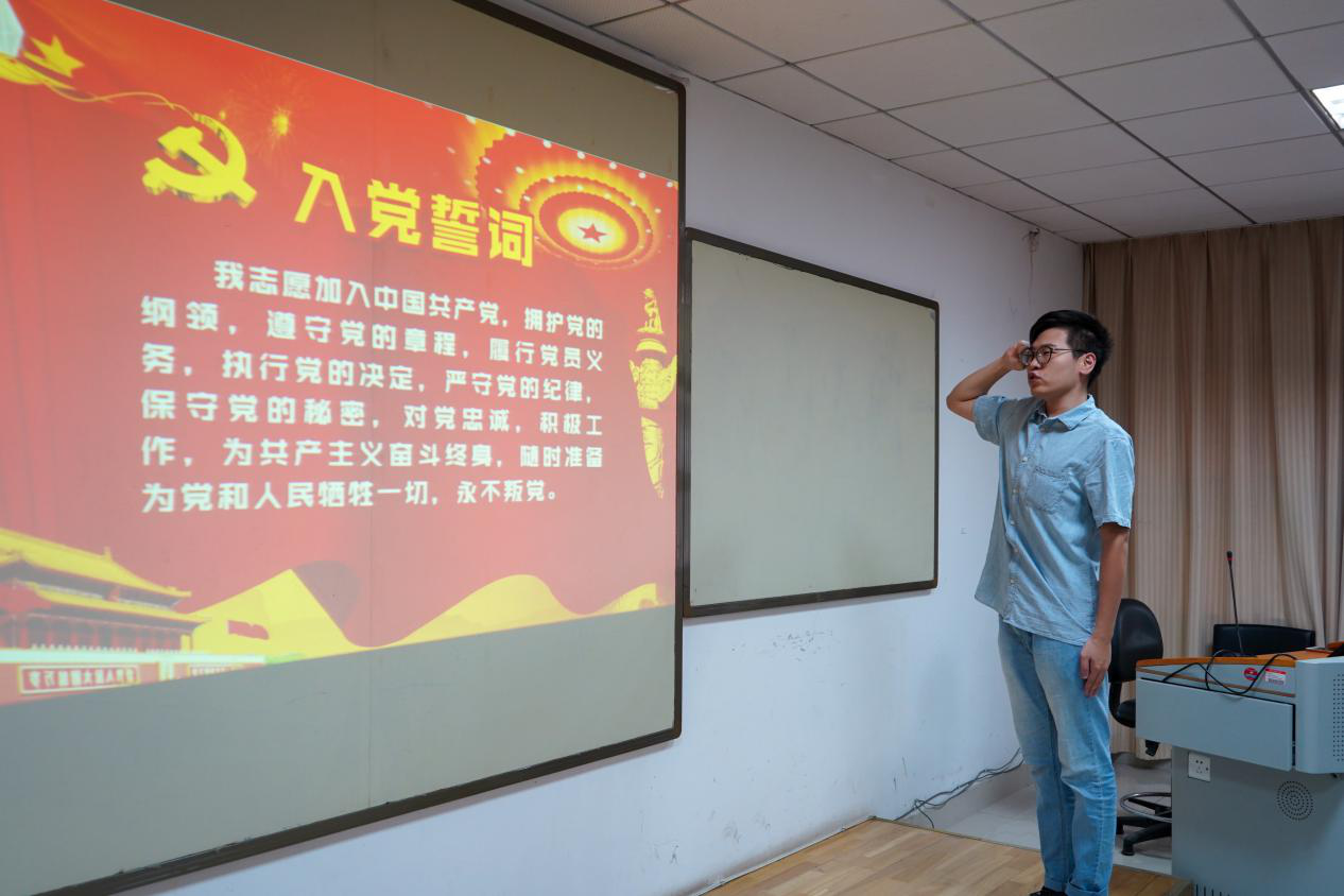 最后,在田子昂的带领下,全体同学宣读了入党誓词,并为在知识竞赛中拔得头筹的同学颁发了奖品。