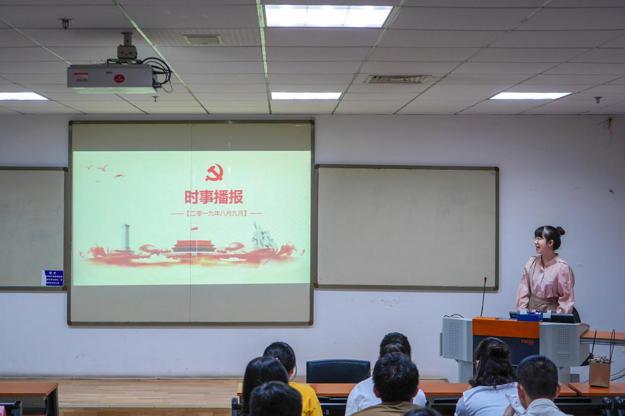 随后,18级管理科学与工程专业的郭英就香港问题与默克尔来华两件事做了简短的时事播报。
