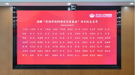 主持人赵学锋介绍了出席此次会议的校友嘉宾,他们是:99级工商管理校友潘山、林喜,99级财政学校友吕广东、胡付强。同时,赵学锋展示了此次参与qy千亿球友会99级发展建设基金捐赠的校友名单,并向所有校友表示感谢。