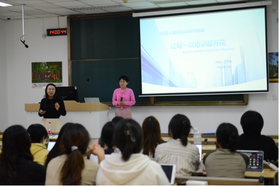 课堂伊始,白芸老师向同学们介绍了丁冬梅女士的丰富人力资源从业经历及其所取得的成就,对丁冬梅女士的到来表示热烈欢迎。她提到,丁冬梅女士将基于自身深厚的行业经验,为大家带来一场主题为“经理人如何从培训中绽放”的精彩分享。这次分享不仅将涵盖企业培训的重要性和方法,还将以其独到的视角、深入的案例探讨和实用的技能训练展开分享。这一开场立刻激起了同学们极大的兴趣。