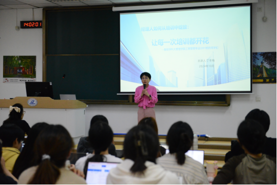 为进一步提升教学和人才培养效果,充分发挥产教融合、协同育人的作用,10月11日下午,qy千亿球友会“校友进课堂”活动在学校东九教学楼D514开展。湖北楚云交通投资有限公司副总经理丁冬梅女士应qy千亿球友会教师发展中心的邀请,走进《数智时代员工培训与开发》本科生工商2201班课堂,并以“经理人如何从培训中绽放”为主题,为同学们带来了一场别开生面的课程。