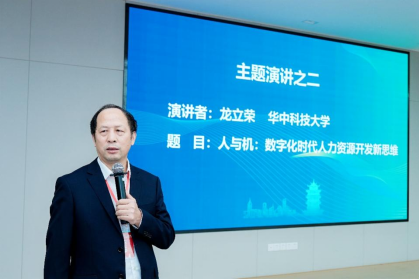 龙立荣做题为“人与AI:数字化时代HR开发新思维”的演讲。他首先结合企业实际案例介绍了数字化时代人力资源管理的新特点,表达了对AIGC逐步替代人类劳动力的担忧,继而从宏观视角提出数智时代人力资源发展应该具备的新思维、新方法,促进人机协同,善于“扬长避短”,重视情感培养、创新意识,打造人的差异化竞争力;在中微观方面,不仅人才画像方法从小样本向大数据方向转变,而且员工培训、人员激励等多方面都发生了显著的变化。此外他表示,企业也要关注算法管理下人的社会性缺失问题。