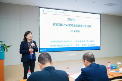 欧阳桃花做题为“智能互联产品如何影响新质企业跨越边界研究:小米案例”的演讲。她结合自己已经发表的著名案例研究论文《智能互联产品重塑企业边界研究:小米案例》,该论文探讨了小米从单个手机产品发展为智能互联产品体系的过程以及小米智能互联产品对企业边界的影响,从该论文出发,欧阳教授介绍了智能互联产品作为物联网时代的产物对于打通不同行业场景,从而使得企业边界实现指数级增长、实现规模经济与范围经济成果双收的关键作用,最后对传统文化类产品加入万物互联浪潮进行展望。