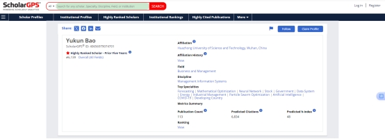 ScholarGPS汇集了全球各学科领域3000多万名学者的信息挡案以及海量论文、专利、书籍大数据资源。应用人工智能、数据挖掘、机器学习和其他数据科学技术,对拥有超过2亿篇出版物和30亿次引用的大型数据库进行分析,以对全球超过3000万学者和55000家机构在各个领域、学科和专业方面的卓越表现排名。
