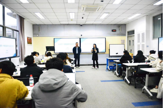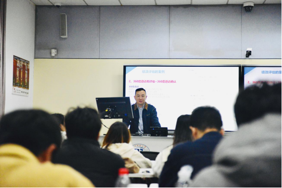 江中原首先分享了他的职业历程,拉近了与同学们的距离。接着,他深入浅出地讲解了目标管理、绩效评估等方面的内容。期间,他通过"OKR目标拆解法"与"多维绩效评估模型"的实战案例,将抽象的管理理论转化为可操作的职场工具,生动地展示了绩效评估的准则与方法。他鼓励同学们结合案例自主思考得出绩效结果,引导学生进行深度思考。江中原的分享不仅让正在学习《数智时代的绩效管理》课程的学生们对实际企业中的绩效管理有了更深的认识,同时也拓宽了知识视野,增强了对课程核心概念的理解。