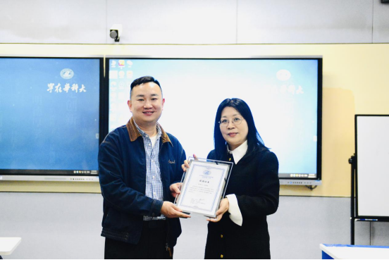 在交流讨论环节中,同学们与江中原及课程老师就如何成为一名出色的HRBP、学业发展和生涯规划等话题展开了热烈的讨论。江中原针对学生们的问题进行了详细且耐心地回答。此外,他还对学生们提出了三点建议,一是要夯实专业基石;二是要淬炼实践本领;三是要拥抱科技赋能。经过一番热烈而富有成效的交流后,周二华老师再次向江中原表示了感谢,并为他颁发了授课证书,以表彰主讲人辛勤付出和精彩分享。随后,周二华老师与江中原及全体同学共同合影留念,定格了这一难忘的时刻。至此,qy千亿球友会“校友进课堂”第29期活动圆满结束。