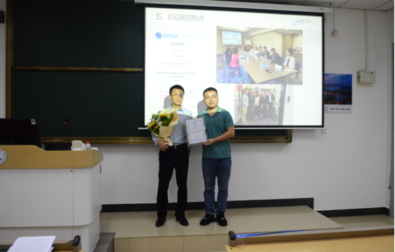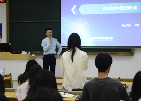 课堂伊始,刘金鑫老师首先向同学们介绍了今天的特邀主讲嘉宾陈茵先生,表示他将结合自己丰富的企业信用评级方面的从业经历,与大家分享企业ESG实践上的见解和心得。