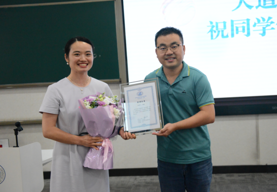 课程尾声,同学们手捧鲜花走上讲台,向主讲人致以诚挚的谢意。随后,刘金鑫老师代表学院为主讲人颁发授课证书,对主讲人的专业分享和辛勤付出表示衷心感谢,最后一同合影留念为本次活动画上了圆满的句号。