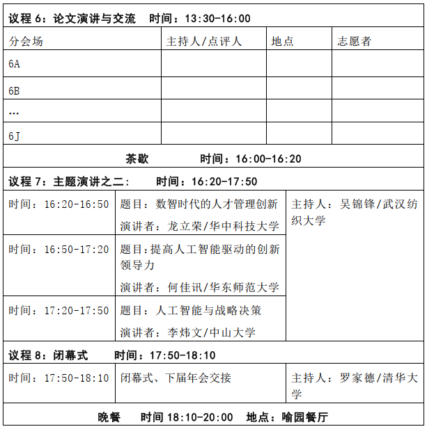 10月13日(周日)下午 论文演讲与交流;主题演讲之二;闭幕式