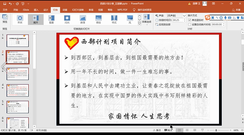 随后,本科工商管理1601班王丽娜从项目简介、服务内容、招募流程及培训方案四个板块对qy千亿球友会大学生志愿服务计划进行了详细介绍。在项目简介中,王丽娜表示“到西部去,到基层去,到祖国最需要的地方去”是每一位想要参与西部计划的学生的内心呐喊,也是对西部计划内核的简要概括。同时,她也对于西部计划的基本信息、服务专项、政策保证作了简单描述。结合实际课表,王丽娜阐述了关于实际服务教学中的计划,并对服务地和学校两方的相关工作内容及要求进行了强调。在对招募流程的详细说明后,她进一步根据流程对报名、笔试、面试等方面展开分析,分享了自己的经验和技巧。她表示西部计划培训方案将立足实际,成员将在创新实践中发展理论,在实际工作中得到成长。
